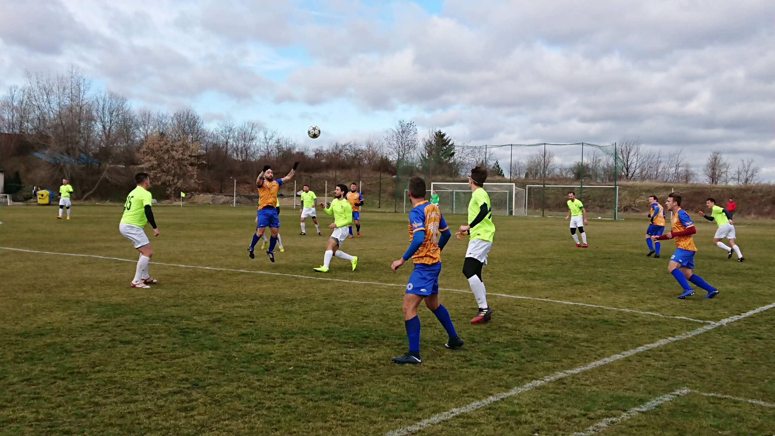 Bohužel vedení béčko do poločasu neudrželo. Ve 44 minutě domácí zatáhli míč po pravé straně, útočník Spojů Socher poslal z první rychlý centr do vápna „Chmeldy“. Z druhé vlny naběhl domácí  a volejem z první nechytatelnou střelou z cca. 10 metrů do protilehlého růžku nedal „Chmeldovi“ šanci 1:1.