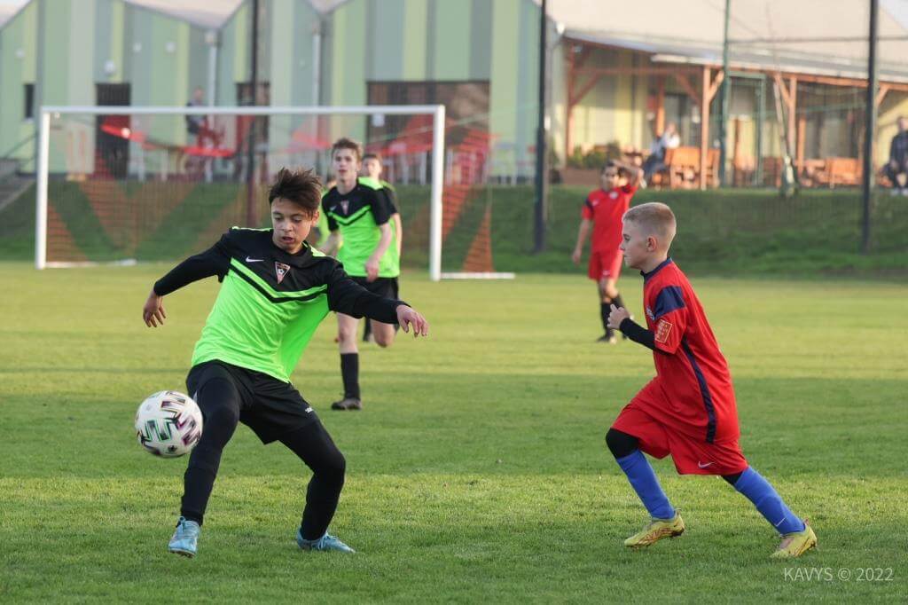 Do druhé půle už jsme nastoupili svéráznější. Náš kapitán Filip se pravděpodobně o přestávce stihl probrat a uvědomit si, že je na fotbale :-). Protože jeho nástup do druhého poločasu byl neuvěřitelný a absolutně nesrovnatelný. Jeho vyklusávání vystřídal nabitý drajf a balóny perfektně padaly do brány soupeře. Na něco takového, jako by snad čekal celý tým. Kluci začali tlačit na soupeře, krásně přebírali balón a zpracovávali jej. Filip Honzárek několikrát perfektně vytáhl míč před bránu a naprosto bezchybně poslal balón na nohu Vítkovi, který stejně nekompromisně zakončil. Naprosto dokonalá akce jich obou.