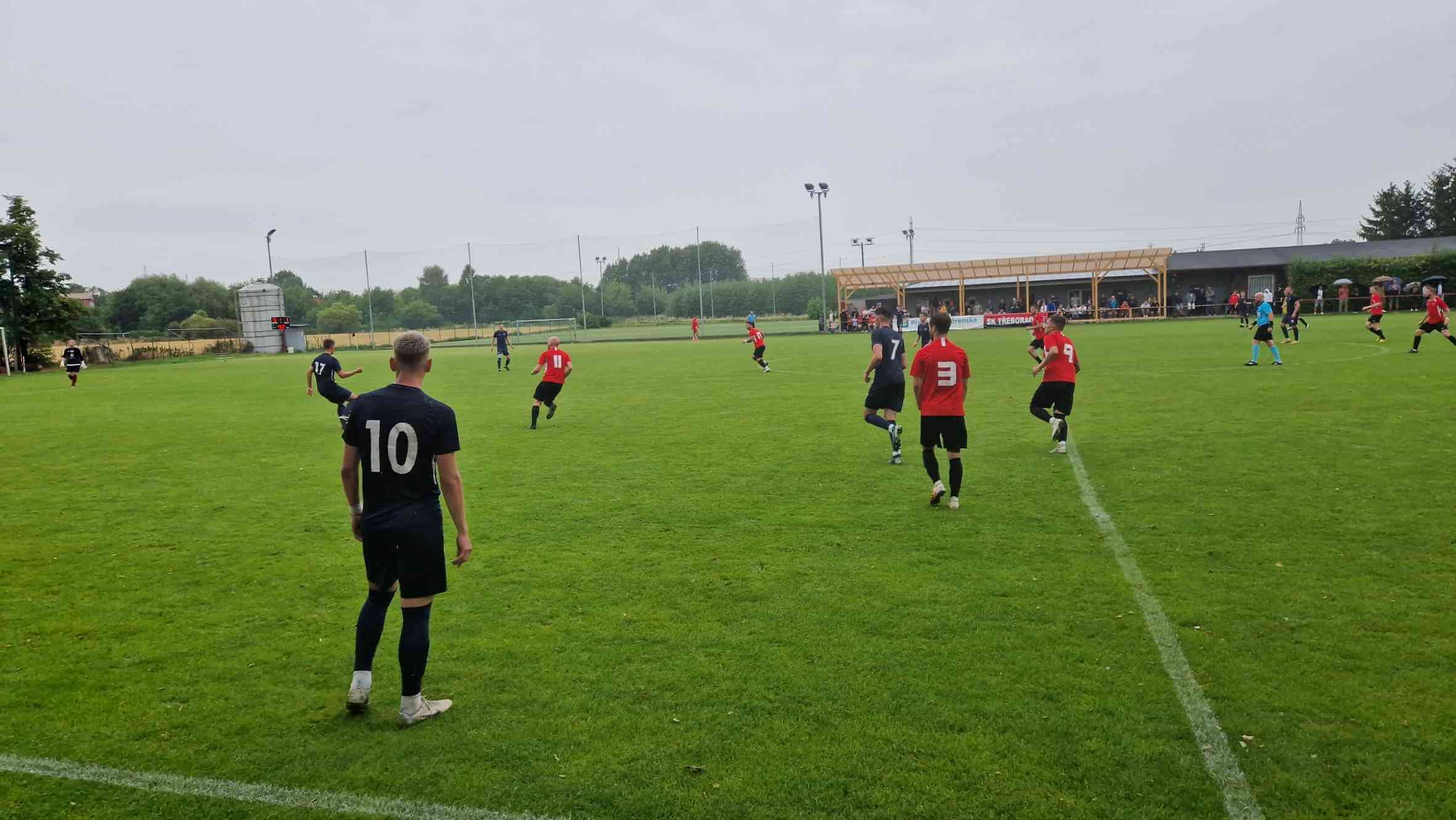V deštivém počasí ale diváci, většina schovaná již pod naši velkou pergolou, viděla brankové hody. Ten zápas měl vlastně vše, 9 branek, snad 4 břevna, 11 žlutých karet, 1 červenou, 2 rozbité hlavy…
